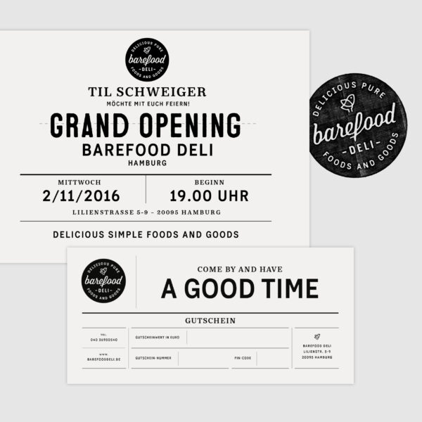 Mit dem Barefood Deli erfüllt sich Til Schweiger einen lang gehegten Traum und eröffnet sein eigenes Restaurant im Stile eines klassischen New York Deli. Unter dem Motto „delicious pure foods and goods“ entwickelten wir das charmante Logo, das Corporate Design und die gesamte Restaurantausstattung wie Speisekarten, Menüboards, Poster sowie die Website. Ergänzend dazu wurden zahlreiche Packagings für hauseigene Produkte wie Weine, Bier, Kaffee oder Olivenöl von uns umgesetzt.