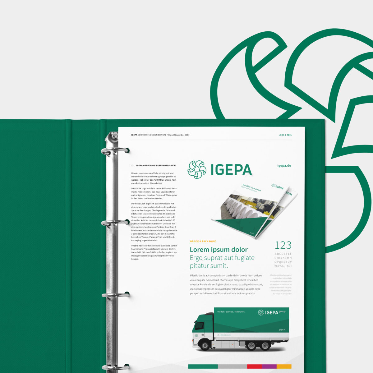 Die IGEPA group ist eine der führenden Fachgroßhandelsgruppen im Bereich Papier, Verpackungen, sowie Druck- und Werbetechnik in Europa. Als Zusammenschluß von fünf deutschen Papiergroßhändlern in den 60er Jahren ist die Gruppe über die Jahre kontinuierlich gewachsen und inzwischen weltweit aktiv. Das neue, überarbeitete Logo begegnet mit seinen klaren Linien und der modernen Typografie dem steten Wandel des Marktes. Der neue Look mit den kristallinen, sich überlagernden Formen übersetzt die Vielschichtigkeit der Gruppe und ihres umfangreichen Sortiments in eine visuelle Sprache.