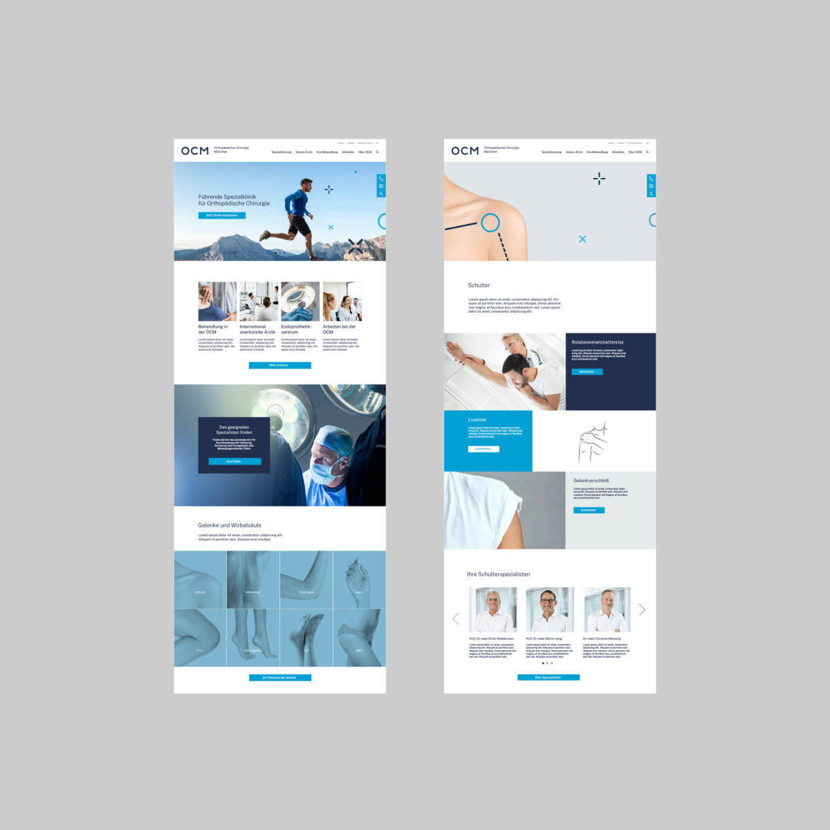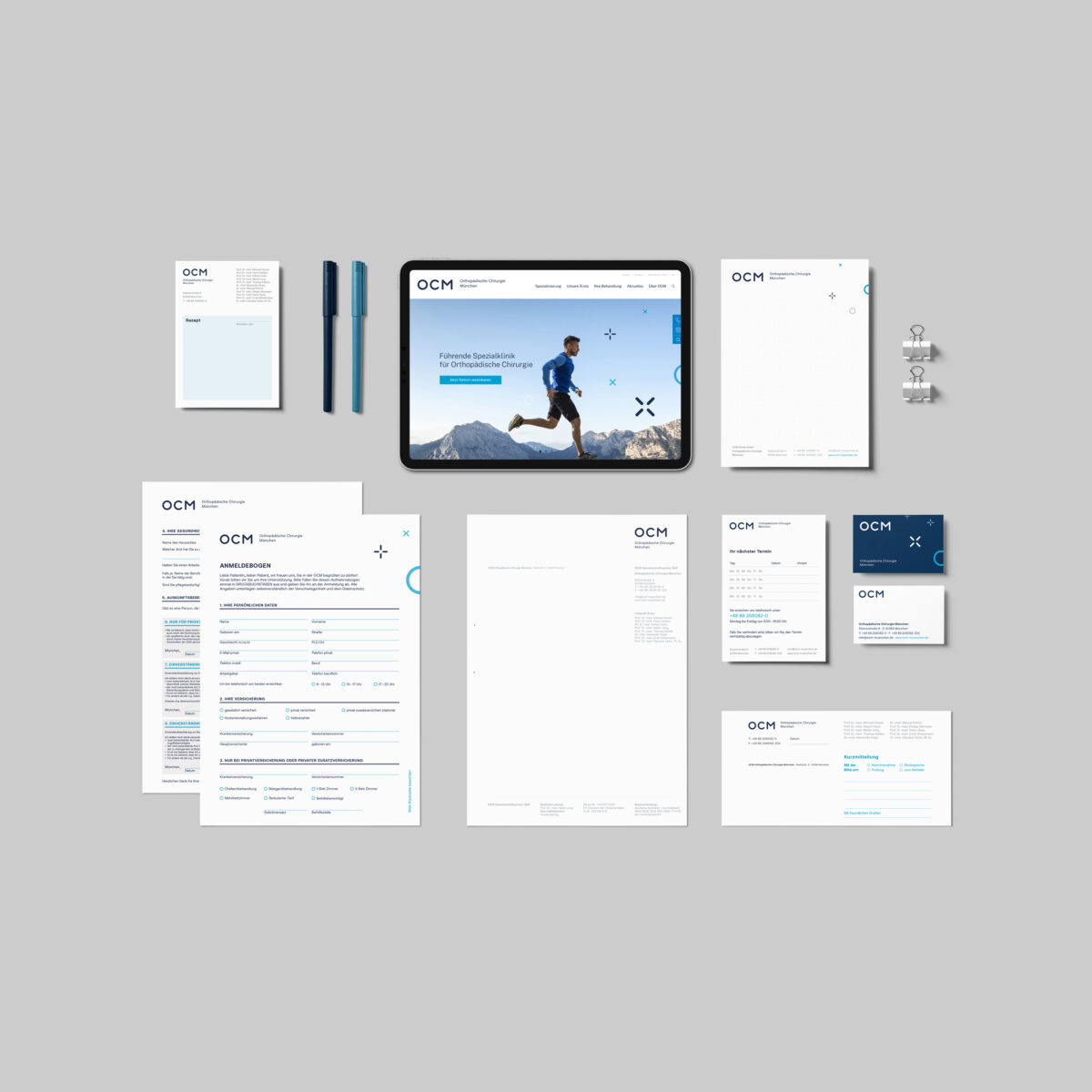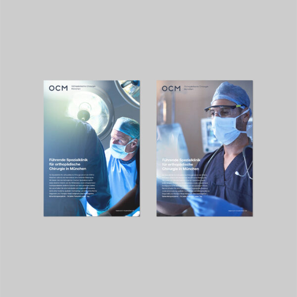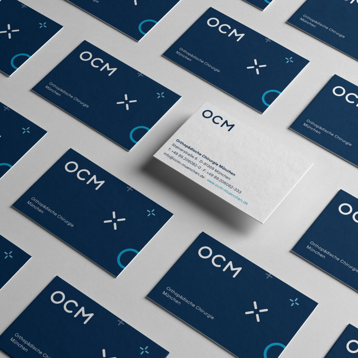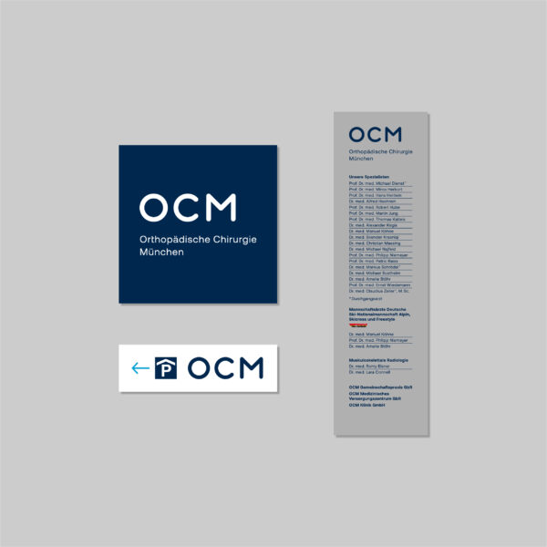 Als eine der führenden Spezialkliniken in Deutschland bietet die OCM in München modernste chirurgische Diagnose- und Therapiemöglichkeiten für Leistungssportler und Patienten mit orthopädischen Erkrankungen. Im Auftrag unseres strategischen Partners we care communications entwickelten wir in einem umfassenden Relaunch das Logo als moderne Marke neu und überführten das gesamte Corporate Design in einen klaren, ikonographisch basierten Look, der technische Präzision mit motorischer Dynamik vereint.