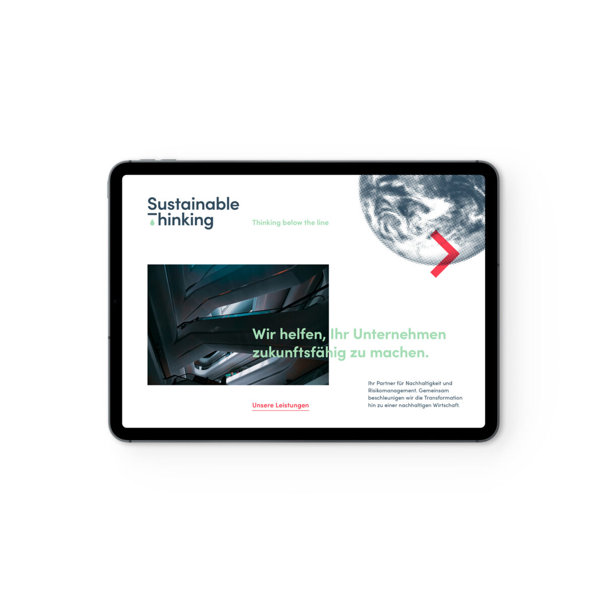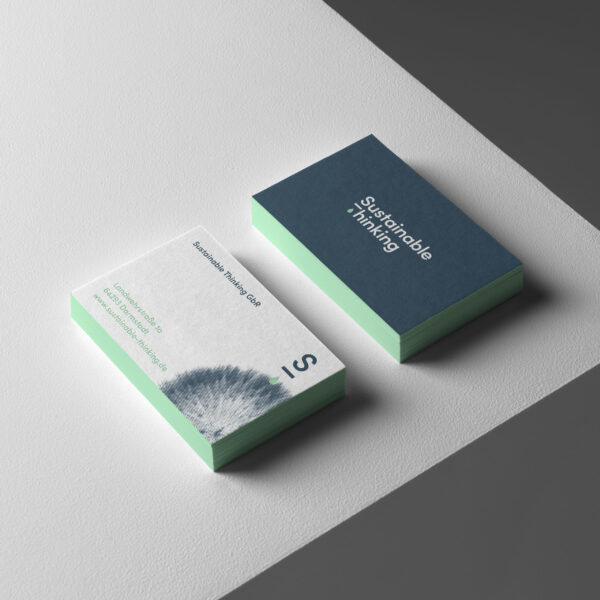 Sustainable Thinking steht für Nachhaltigkeit, Klimaanalyse und ökologische Transformation. Als strategischer Partner berät und unterstützt die Darmstädter Beratungsgesellschaft Unternehmen auf ihrem Weg in eine klimaneutrale Zukunft. Denn unterm Strich bringt nur Umdenken eine nachhaltige Veränderung! Das von Format Design entwickelte Logo überträgt diese Message in eine klare und prägnante Wortmarke.