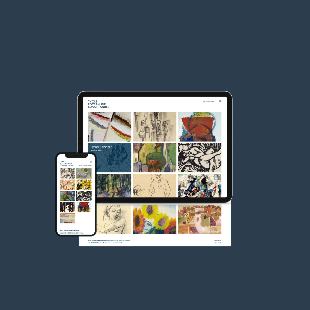 Mit seiner Spezialisierung auf Kunst des deutschen Expressionismus und der Klassischen Moderne gehört Thole Rotermund Kunsthandel zu den führenden Händlern in Europa. Seit Jahren gestaltet und betreut Format Design sämtliche Publikationen des Hamburger Kunsthändlers. Das Design, die individuelle Farbgebung und hochwertige Produktion der Kunstkataloge machen diese selbst zu gefragten Sammlerobjekten.