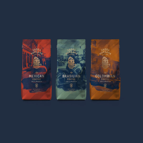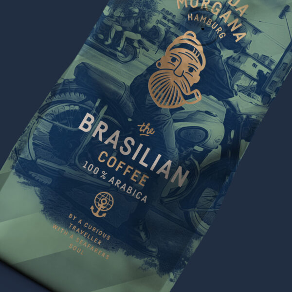 Charmantes Designkonzept für eine Hamburger Delikatessenmarke. Hamburg als Hafenstadt war schon immer ein wichtiger Umschlagplatz für Waren und Güter aus aller Welt. Vadda Morgana bringt Spezialitäten wie edle Kaffees, erlesene Nüsse und feine Gewürze aus dem Orient und aus Übersee in die Hansestadt. Weit gereiste Produkte als Souvenir oder Geschenk für neugierige Menschen mit Fernweh.