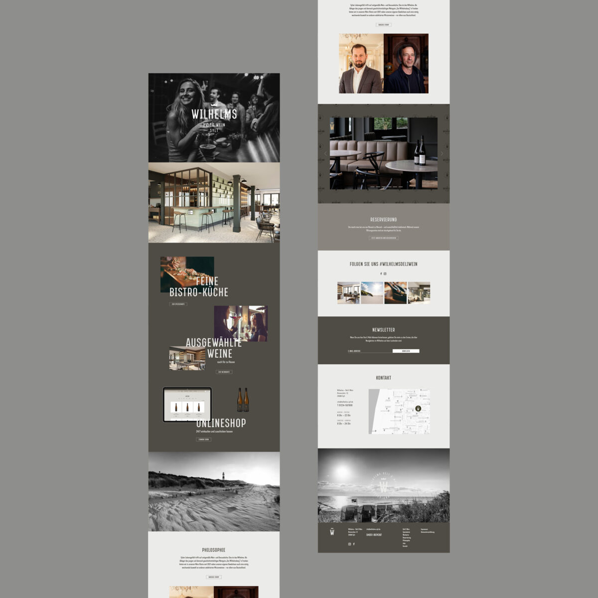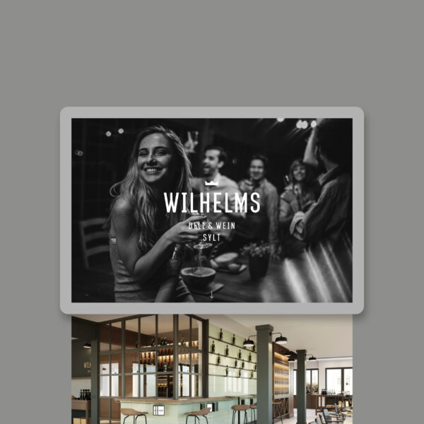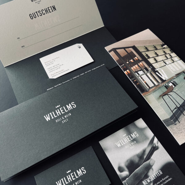 Sylter Lebensgefühl trifft auf zeitgemäße Wein- und Genusskultur: Das ist das Wilhelms Deli & Wein in Westerland. Als Ableger des ebenfalls von uns gestalteten Weinguts „Gut Wilhelmsberg“ in Franken bietet es als modernes Wein-Bistro neben den eigenen Gewächsen auch eine selektierte Auswahl an deutschen Winzerweinen. Das Design und die Ästhetik des Gut Wilhelmsberg haben wir hier in eine exklusive urbane Gastronomie übertragen, die der Marke und den Weinen den perfekten Raum zur Entfaltung bietet.